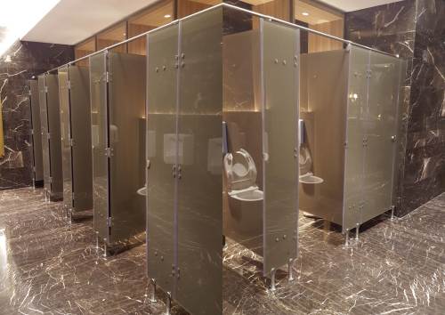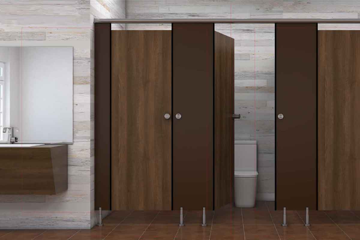 Pintu cubicle phenolic ini dipadukan dengan dinding kamar mandi secara langsung sehingga tampilannya lebih cantik.